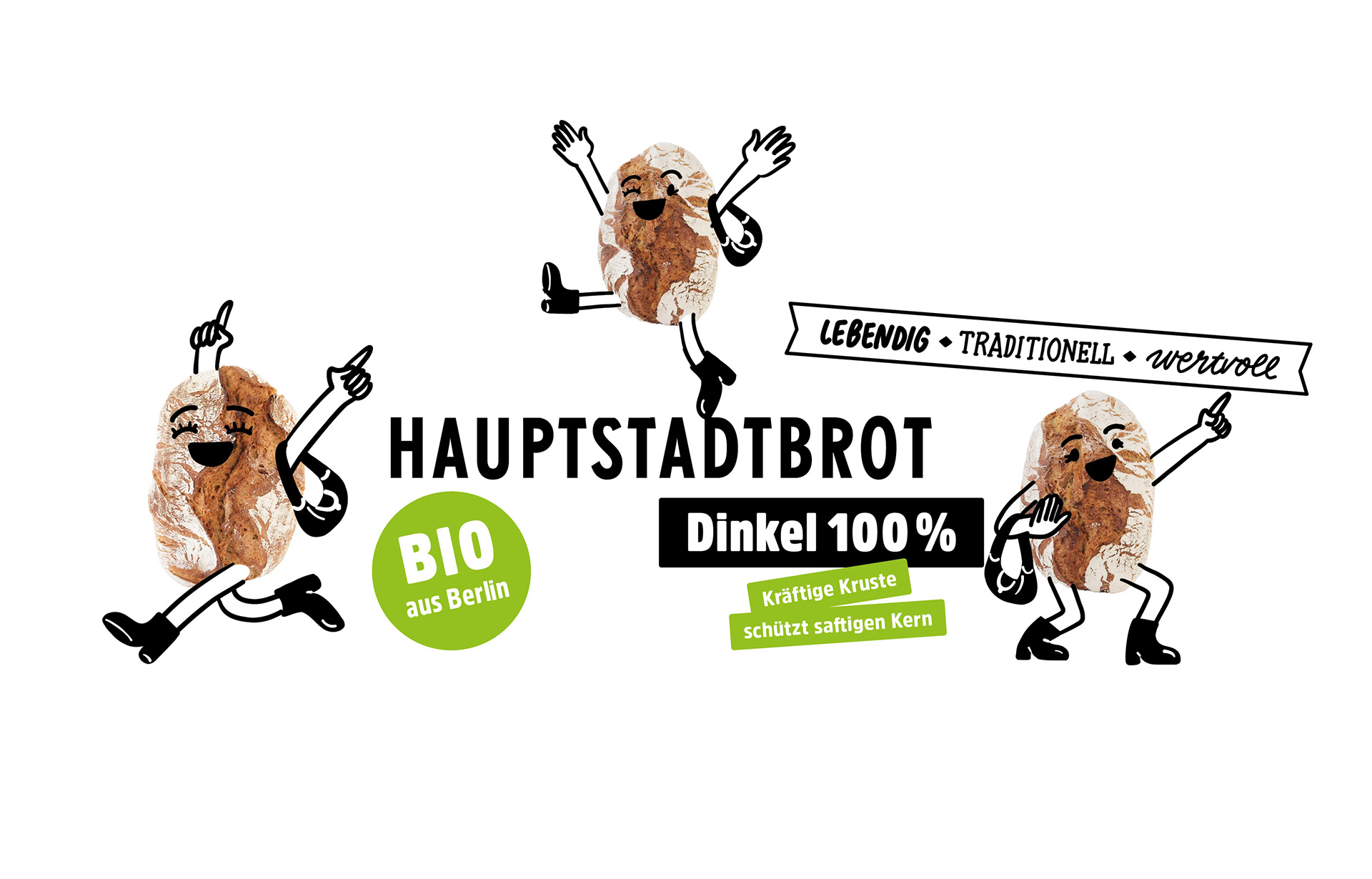 Wie können wir Premium anders verpacken? Die Antwort ist einfach: mit Spaß! Wir bringen Freude ins staubige Brotregal. Unsere Brote haben Charakter. Unsere Brote sind Berliner Originale – divers, mit knackigen Texten und luftigen Illustrationen.
