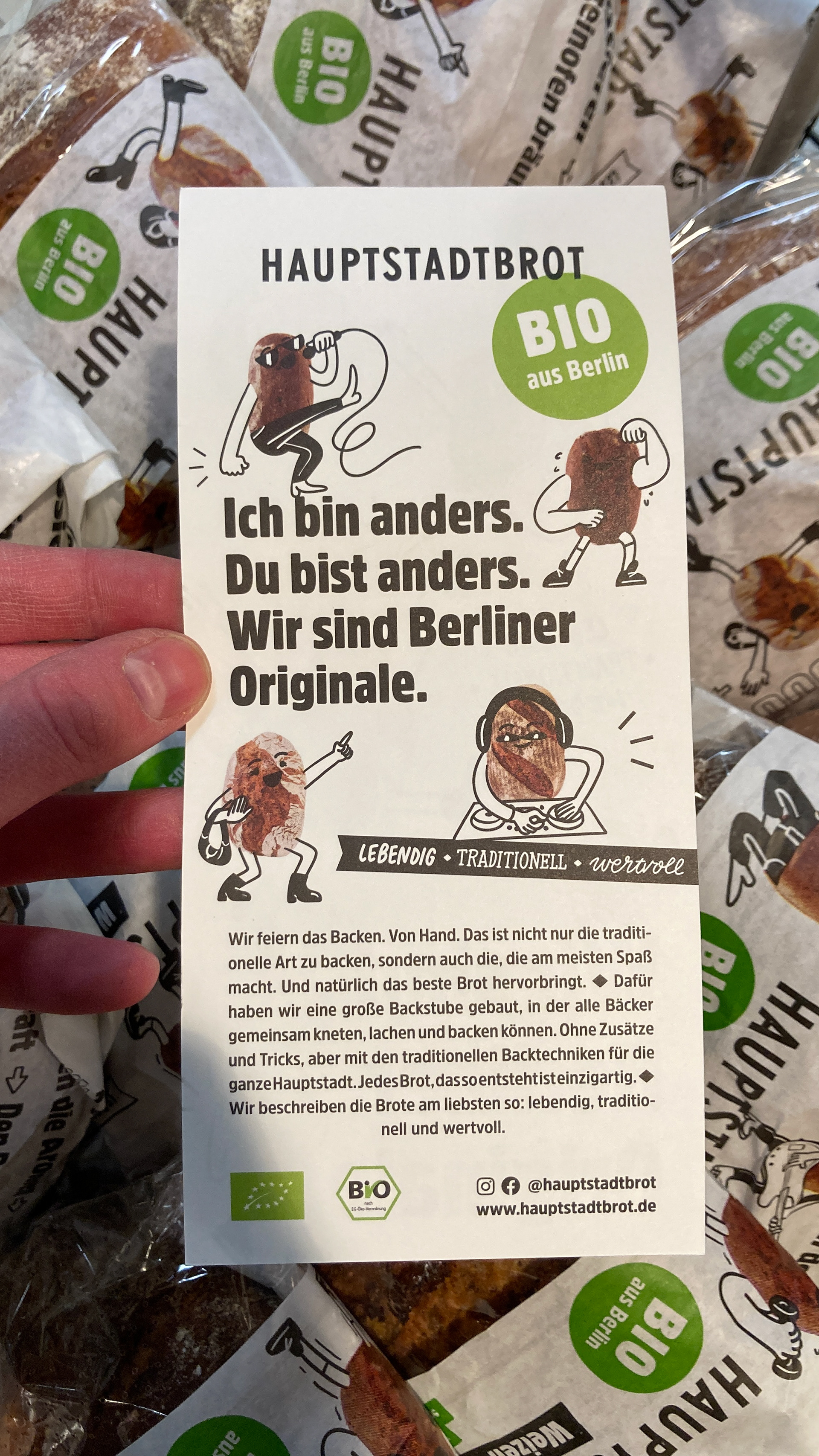 Kurzer Trommelwirbel für die große Überraschung: Das Hauptstadtbrot ist besser. Viel besser, natürlich. Aber wer weiß das schon? Nur diejenigen, die es einmal gekauft haben. Von denen wissen aber, dass sie es immer wieder tun. Hauptstadtbrot ist also das unbekannte Brot, das nach dem ersten Bissen zum Staple wird. Es muss also in die Münder – ab an den Probierstand! Zack, erfolgreiche Maßnahme! Wäre da nicht die Pandemie mit ihren Masken, die dazwischenkommen.